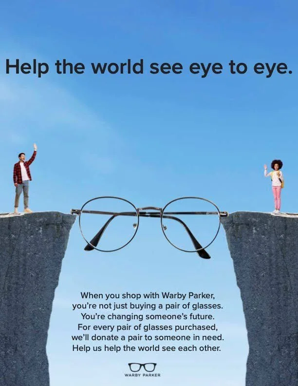 Strategy Idea: Showcasing that when you buy a pair of Warby Parker glasses another pair will go to someone in need,